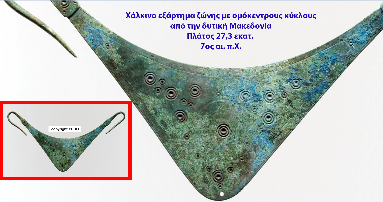 - δύο χάλκινα εξαρτήματα ζωνών από την δυτική Μακεδονία (7ος αι. π.Χ.),