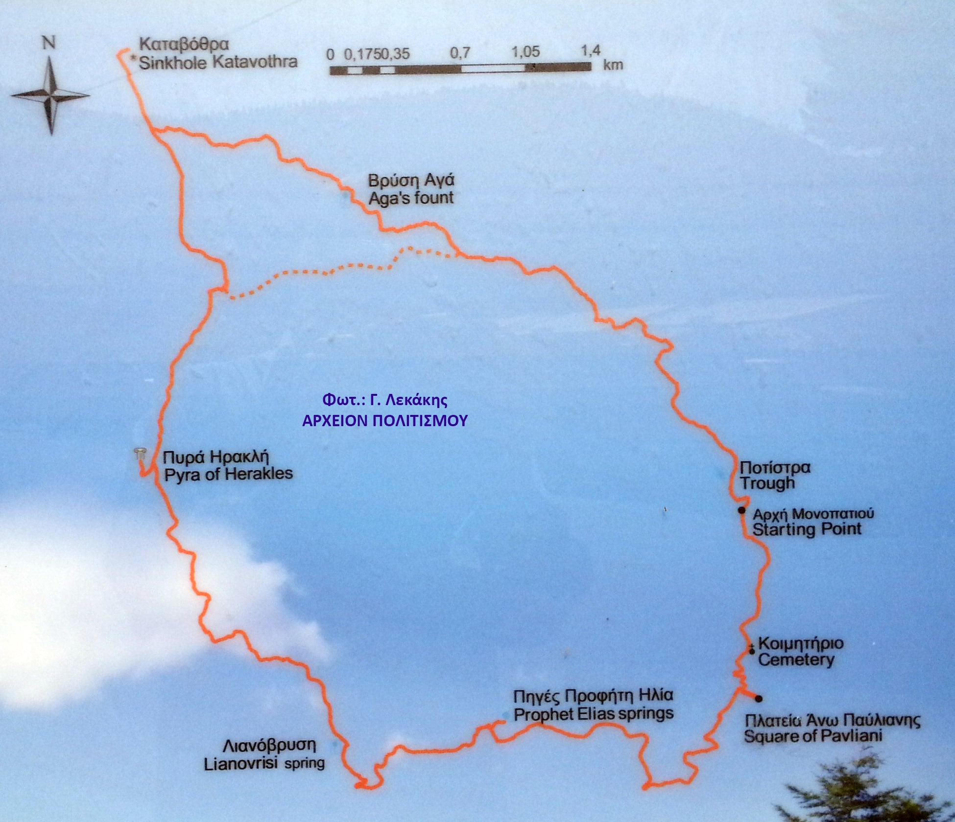 Κυκλικο πεζοπορικο μονοπατι: Ανω Παυλιανη – ποτιστρα – βρυση Αγα – καταβοθρα – Πυρα Ηρακλεους – Λιανοβρυση – Πηγες Προφητη Ηλια.