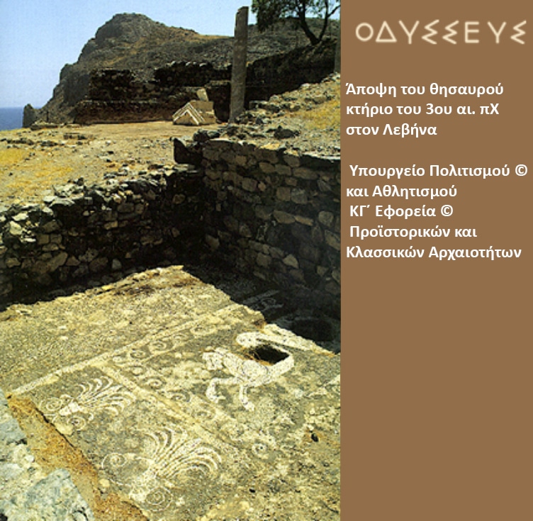 θησαυρος αρχαιο κτηριο 3ος αιωνας πΧ Λεβηνας ετυμολογια λεοντος λεοντα λεων λιονταρι λεονταρι λεξις φοινικικη γλωσσα αρχαια πολη Λεβηνα λεβηνος κολπος Νοτιο Κρητικο Λιβυκο πελαγος Αστερουσια ορη ακρωτηρια ακρωτηρι ακρωτηριο Λεοντας Ψαμιδομουρι Γορτυνα Γορτυς Λεβηνα λεβην λιμανι Γορτυνος, ιερο Ασκληπιου ονομα πολις φοινικικο μορφη ακρωτηριον κεφαλι λιονταριου περιοδος ακμη ιερον Ασκληπιος Ασκληπειο Ασκληπειον ελληνιστικη Ρωμαικη εποχη Νεολιθικη κατοικηση βραχος κορυφη αρχαιοτερος πρωτος βεβαιωμενος οικισμος, ωστόσο, Πρωτομινωικη 3η χιλιετια 2600 – 2000 πΧ πρωτομινωικος ταφος ταφη ευρημα επαφη εμποριο μινωικος Αιγυπτος Κυκλαδες μινωικη μινωικο αρχαια Στραβων, Φιλοστρατος αναπτυξη λιμην Γορτυνας, 4ος αιωνας αρχαιοι Γορτυνιοι κρητες ιδρυση κανονες ιεροτελεστι Επιδαυρου Επιδαυρος αργολιδα 2ος καταστροφη Φαιστος πρωτευουσα Μεσαρα Κρητης σεισμος 1ος 46 ανοικοδομηση ρωμαικα χρονια σταθμος Πρωιμη Μεση Βυζαντινη παλαιοχριστιανικη βασιλικη βυζαντινο κτηριο βυζαντιο αγγλος πλοιαρχος σπρατ Spratt αρχαιολογια πρωτη 20ος Ιταλικη Αρχαιολογικη Σχολη ανασκαφη ιταλια χαλμπχερ Halbherr περνιερ Pernier 1900, 1910 1912 1913 ναος ανδηρο τεχνητο προσανατολισμος τοιχος σηκος κτισμα πηλινη πλινθος επενδυση ασπρο μαρμαρο, μαρμαρινη πλακα δαπεδο ψηφιδωτο κιονας βαση λατρευτικο αγαλμα ρωμαικη αυτοκρατορια 2ος μX χριστιανισμος εγκαταλειψη αρχιτεκτονικη χρηση βασιλικη αγιου Ιωαννη Ιωαννου αγιος Ιωαννης αη Γιαννης 9ος 16ος 1586 μπελλι μπελι Belli κατοψη κιονες ανασκαφες αναστηλωση ελληνιστικη 4ος φυσικο λιμανι προστασια αρχαιος λιμενοβραχιονας νοτιοανατολικος ανεμος, θαλασσα μεγαλο μακροστενο βυζαντινη εκκλησια ιν ιερος ναος αρχαιολογικος χωρος λατρευτικο μνημειο πλατωμα, ισοπεδωση τεχνητη συγκροτημα επιγραφη τεμενος στοα θησαυρος κρηνη ταρατσα τοιχοι διακοσμηση μαρμαρινος λατρεια Υγιεια υγεια αναθηματικη επιγραφες αφιερωμα Ξενιονας ξενιων δωματιο καταλυμα ιερευς ιερεας ιερεων μεγαλη μαρμαρινη σκαλα κλιμακα αρχαιοτερη φαση οικοδομηση θαυματουργος θεραπεια θαυμα ιαση ιαματικη πηγη αδυτο αβατο αδυτον αβατον ιαματικο καθαρο νερο θεραπευτικες ιδιοτητες ορθογωνιος πινακας εικονα ιπποκαμπος συνεχομενες σπειρες σπειρα κρυπτη, τετραγωνο πηγαδι, ορθογωνιος ασβεστολιθος κυλινδρικο καλυμμα, ασφαλεια κλειδαρια υστερη αφιερωμα αναθημα 3ος Υπουργειο Πολιτισμου ΚΓ Εφορεια Προιστορικων και Κλασσικων Αρχαιοτητων, σκοπιμη ανορθογραφια ομηρος ιλιας μυκηναικη γλωσσα γραφη οργανικη πτωση rewopi λεFοντφι rewotejo λεοντειος rewo δοτικη λειουσι λεοντεσσι επιγραφες ωμοφαγος χαροπος ομηρου οδυσσεια ορεσιτροφος μεταφορικα θεα Αρτεμιδα, αρτεμις Ζευς γυναικα προυξενος αιφνιδιου θανατου αιφνιδιος θανατος ιλιαδα αγριος θηριωδης ανθρωπος αισχυλος γενναιος ανδρας Ευριπιδης αριστοφανης αναλκιν, Αιγισθος οικοι οικος μαχη αλωπηξ αριστοφανης πιθηκος Πλατων ξυρεω παρομοιωση λεια συνηθεια προσβολη ποιμνιο μανδρα κυνηγιον κυνηγι ηροδοτος Μακεδονια αριστοτελης ορεινη ηπειρος Παυσανίας Θρακῃ Ζωδιακος Αστερισμος, αρατος ζωδιο ζωδια λεοντη δερμα, Λουκιανος αλεπου ειδος καρκινος, Διφιλος αθηναιος οφις, φοδι αρτεμιδωρος λεοντιασις, αρεταιος χορος λεοντες ανδρες αφιερωμενοι υπηρεσια Μιθρας, υαινα λεαινα, Λατινικα leo, αρχαια Γερμανικα lewon, σλαβικα livu εβραικα laish θηριο ελλαδα, ανεξαρτητοι τυποι λεξεως ινδοευρωπαικη ετυμολογια Μπαμπινιωτης δανεια λεξη, αγνωστο αγνωστου ετυμου σ