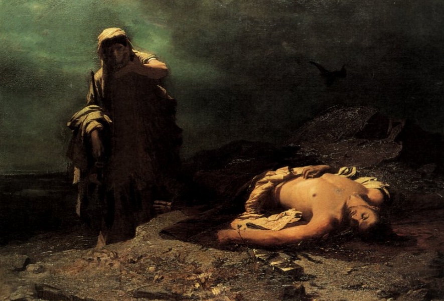 Η Αντιγόνη συναντά νεκρό τον αδελφό της, Πολυνείκη – πίνακας του Ν. Λύτρα.