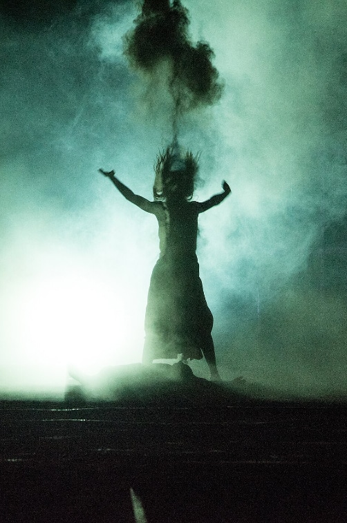 Η Αντιγόνη θάβει τον αδελφό της, Πολυνείκη, παράσταση Θέατρο Μπουργκ, 2015.
