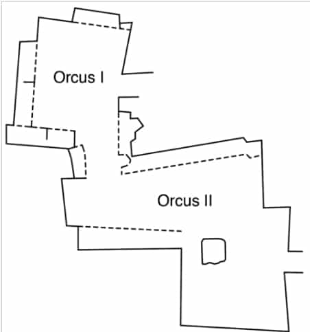 Ο Τάφος του Όρκου Α΄ (γνωστός και ως «Τάφος της Βέλχα») χτίστηκε το 470 – 450 π.Χ. Οι κύριοι και δεξιοί τοίχοι απεικονίζουν ένα συμπόσιο, που πιστεύεται ότι είναι αυτό των Σπουρίνων μετά τον θάνατό τους στην Μάχη των Συρακουσών. Περιβάλλονται από δαίμονες που ενεργούν ως οινοχόοι.
