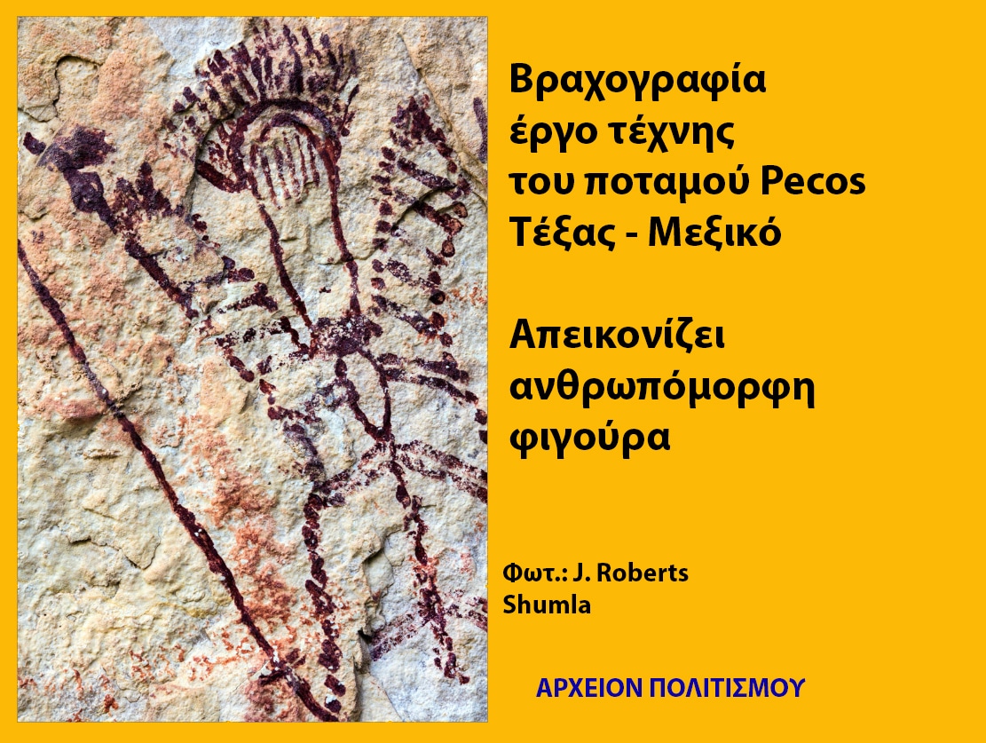 Η αρχαιότερη βραχογραφία που ανακαλύφθηκε στα ασβεστολιθικά βραχοκαταφύγια στα Κάτω Φαράγγια Πέκος[1] του νοτιοδυτικού Τέξας και του βόρειου Μεξικού έχει χρονολογηθεί με ραδιοάνθρακα 6.000 χρόνων.