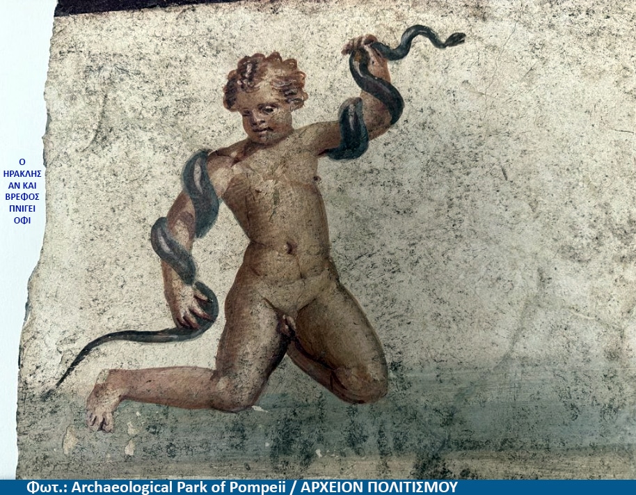 Αξιωματούχοι του Αρχαιολογικού Πάρκου της Πομπηίας κατέληξαν στο συμπέρασμα ότι ένα λεηλατημένο τμήμα μιας τοιχογραφίας, που απεικονίζει τον Ηρακλή ως βρέφος να παλεύει με ένα φίδι, προέρχεται από την Civita Giuliana.