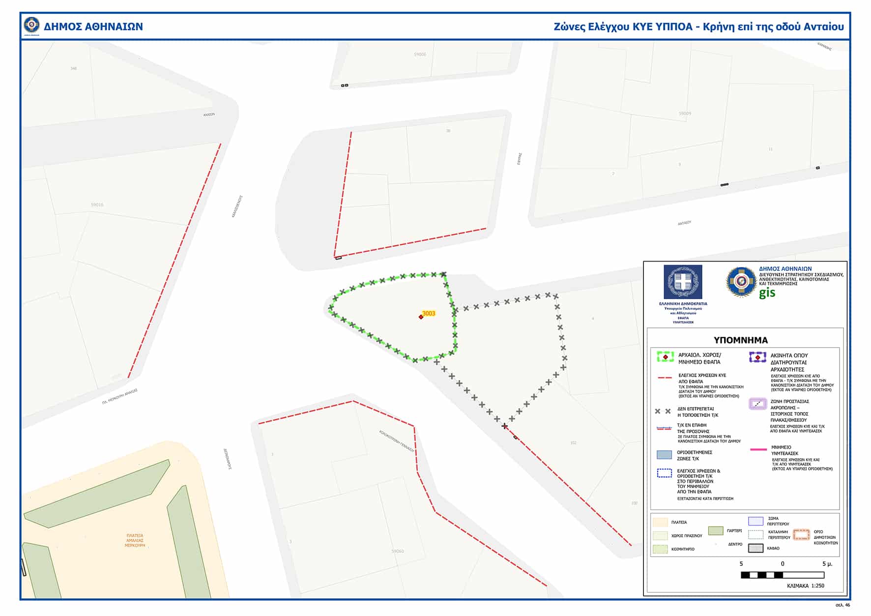 Η αυλή της Κρήνης ευρίσκεται σε αρκετά χαμηλότερη στάθμη από τις παραπάνω οδούς. Η άνω οροφή της Κρήνης ευρίσκεται σχεδόν στο επίπεδο των δημοτικών οδών. Το 1985, έγινε τροποποίηση του ρυμοτομικού σχεδίου, εγκρίνοντας την μείωση του πλάτους τμήματος της οδού Ανταίου για την προστασία του αρχαιολογικού χώρου και τον χαρακτηρισμό της οδού ως πεζοδρόμου.