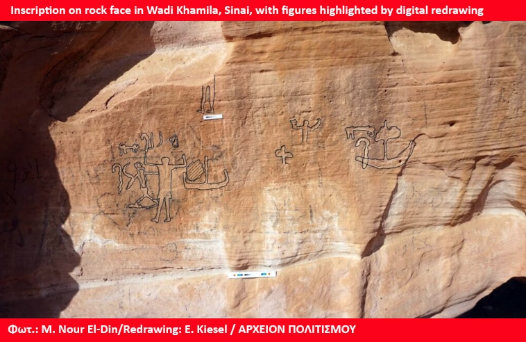 ΠΗΓΗ: M. Nour El-Din (Υπ. Τουρισμού και Αρχαιοτήτων Αιγυπτου) και L. Morenz (Πανεπιστημίου Βόννης) «Wadi Khamila, the god Min and the Beginning of „Pharaonic” – Dominance in Sinai 5000 years ago», Blätter Abrahams. Και «A 5,000-Year-Old Inscription Reveals the Terrifying Brutality of Ancient Egypt’s Colonial Expansion Into Sinai – Newly identified rock art reveals how ancient Egypt’s hunt for copper turned into brutal conquest», ZME Science, ΑΡΧΕΙΟΝ ΠΟΛΙΤΙΣΜΟΥ, 30.1.2026.