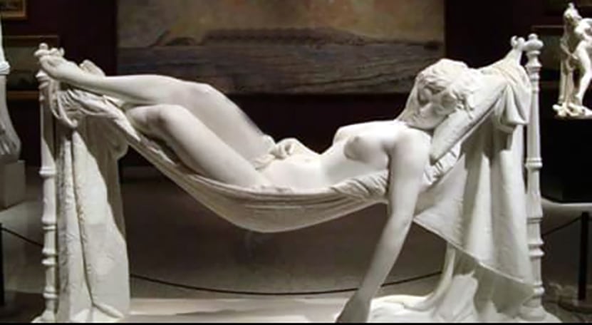 Κι έτσι ο αιωρισμός στην αιώρα έλαβε εξαγνιστικό-γονιμικό χαρακτήρα, αφού παρέπεμπε και στις κινήσεις της ερωτικής πράξεως, ως στοιχείο του διονυσιακού εποχικού δράματος[6], που στόχο έχει την αύξηση των φυτών, εν προκειμένω των αμπελιών… Άλλωστε η ίδια η θεά του έρωτος, η Αφροδίτη συνήθιζε να αναπαύεται γυμνή σε αιώρες (παρακάτω φωτ.)…
