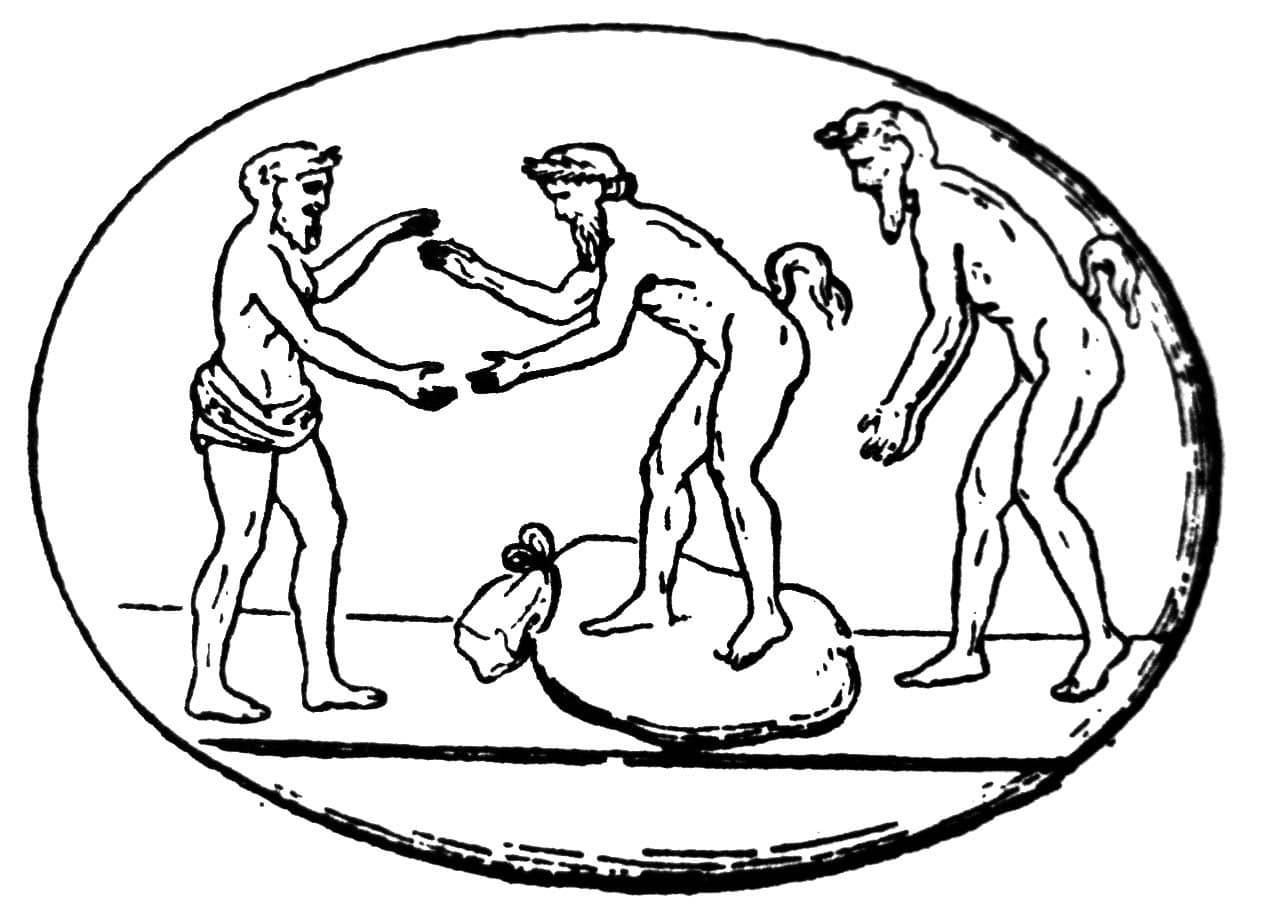 Ασκωλιασμος Σατυρων, σε εγχάρακτο λίθο.