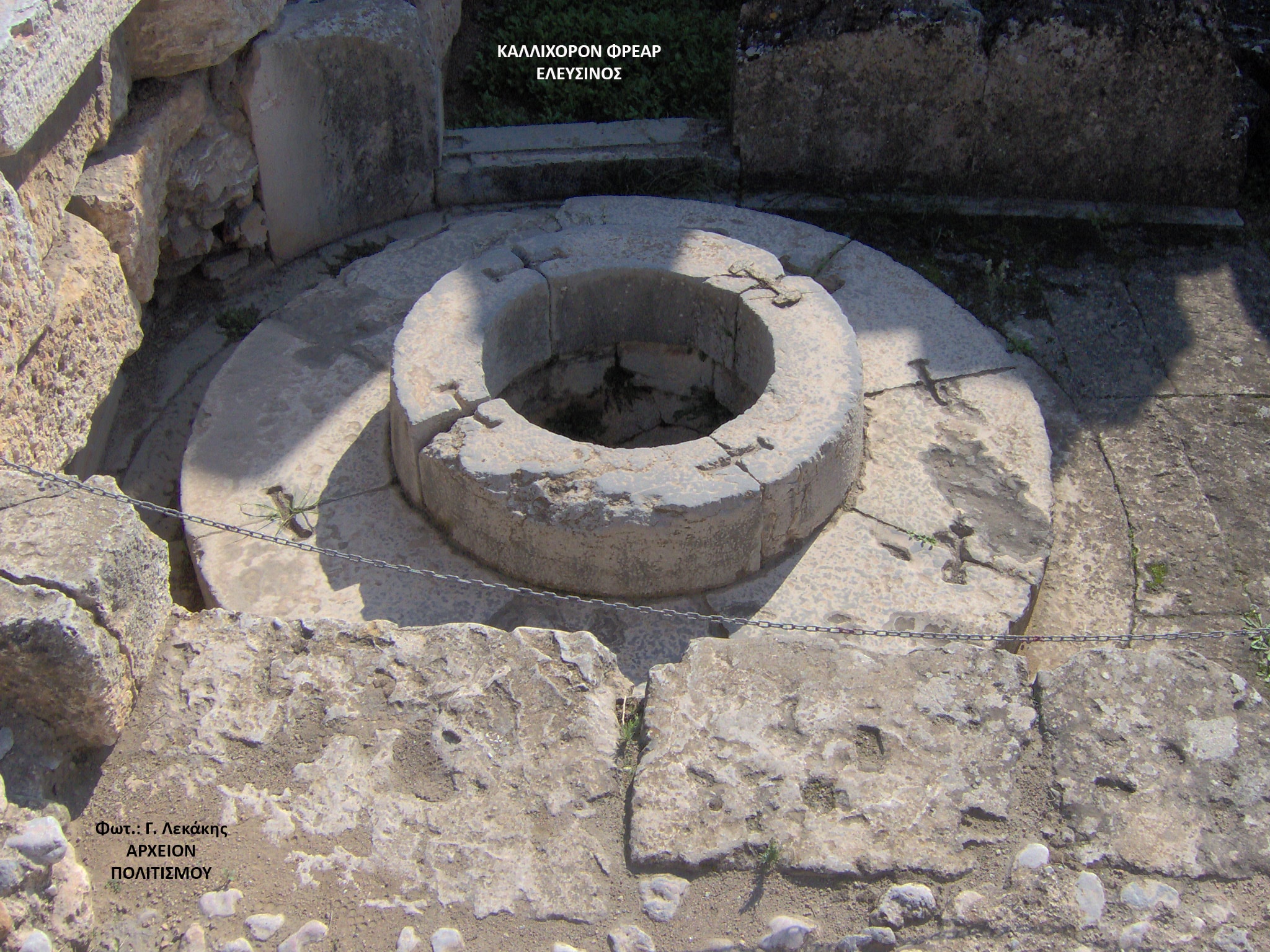 Το πιο γνωστό αρχαίο πηγάδι στην Αττική, ήταν το Καλλίχορον Φρέαρ (παραπάνω φωτ.), εντός του ιερού χώρου της Ελευσίνος, γύρω από το οποίο οι γυναίκες της πόλεως είχαν καθιερώσει την εκτέλεση χορών και μουσικών χορωδιών προς τιμήν της θεάς Δήμητρος, η οποία στάθηκε να ξαποστάσει εδώ, στον δρόμο για την αναζήτηση της απαχθείσας κόρης της, Περσεφόνης και την απάντησε η θυγατέρα του Κελεού, Δημώ. Εξ αυτού η αρχαία παροιμία “ἡ περὶ τὸ φρέαρ ὄρχησις”, που λέγεται για ανθρώπους που βρίσκονται στα πρόθυρα καταστροφής, στο χείλος του πηγαδιού / γκρεμού (Πλούταρχος).