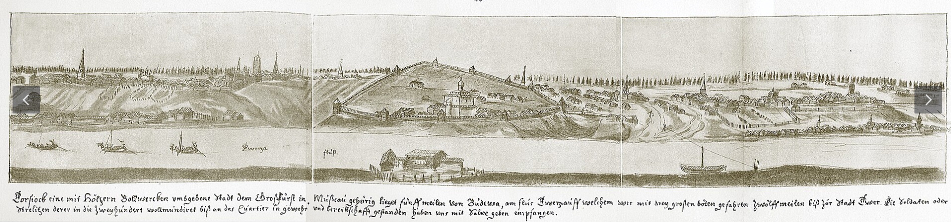 Πανόραμα του Τόρζοκ, από το λεύκωμα του Αυστριακού διπλωμάτη και ταξειδιώτη Α. Μέγιερμπεργκ, του 17ου αι.