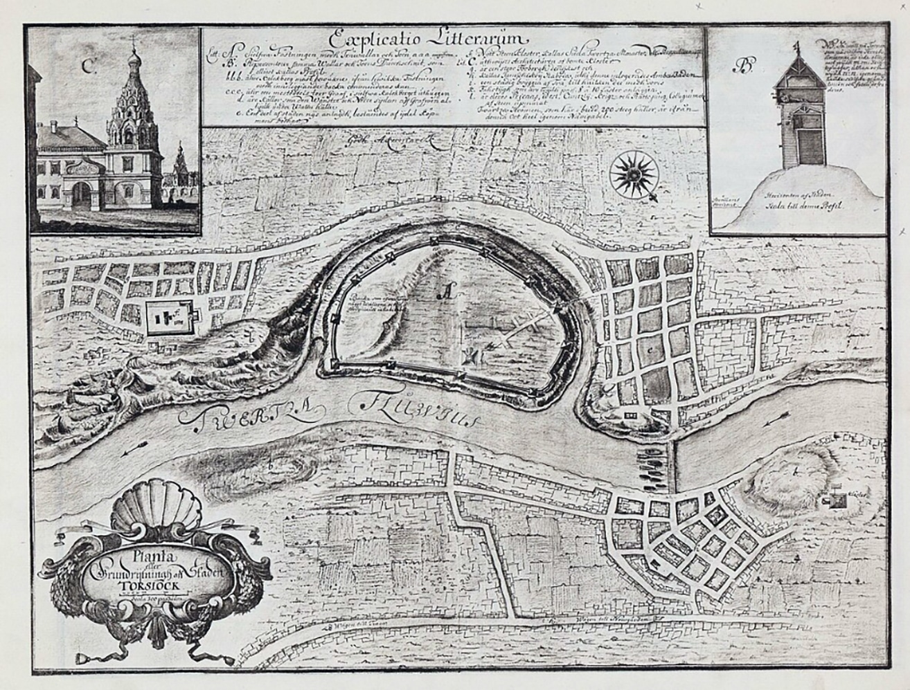 Σχέδιο πόλεως του Τόρζοκ, από την έκδοση του Έρ. Πάλμκουιστ “Σημειώσεις για την Ρωσία”, 1674.