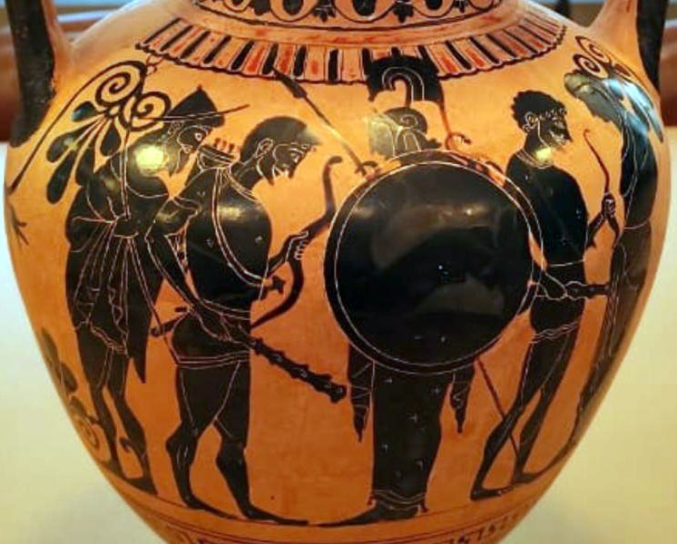 - δύο μελανόμορφα αγγεία (αμφορέας και όλπη) αττικών εργαστηρίων του 6ου αιώνα π.Χ.