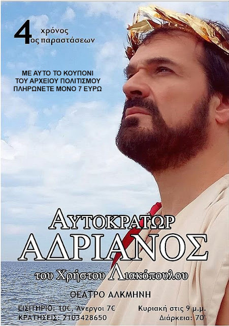 «Αυτοκράτωρ Αδριανός» με τον Χρήστο Λιακόπουλο, 4ος χρόνος παραστάσεων! Το ΑΡΧΕΙΟΝ ΠΟΛΙΤΙΣΜΟΥ σας προσφέρει έκπτωση για την παράσταση!