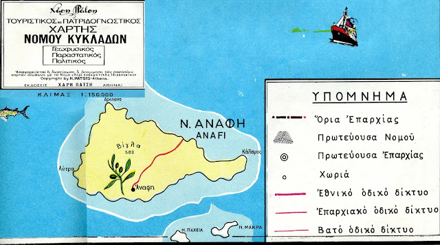 Παλαιός τουριστικός και πατριδογνωστικός χάρτης της Ανάφης