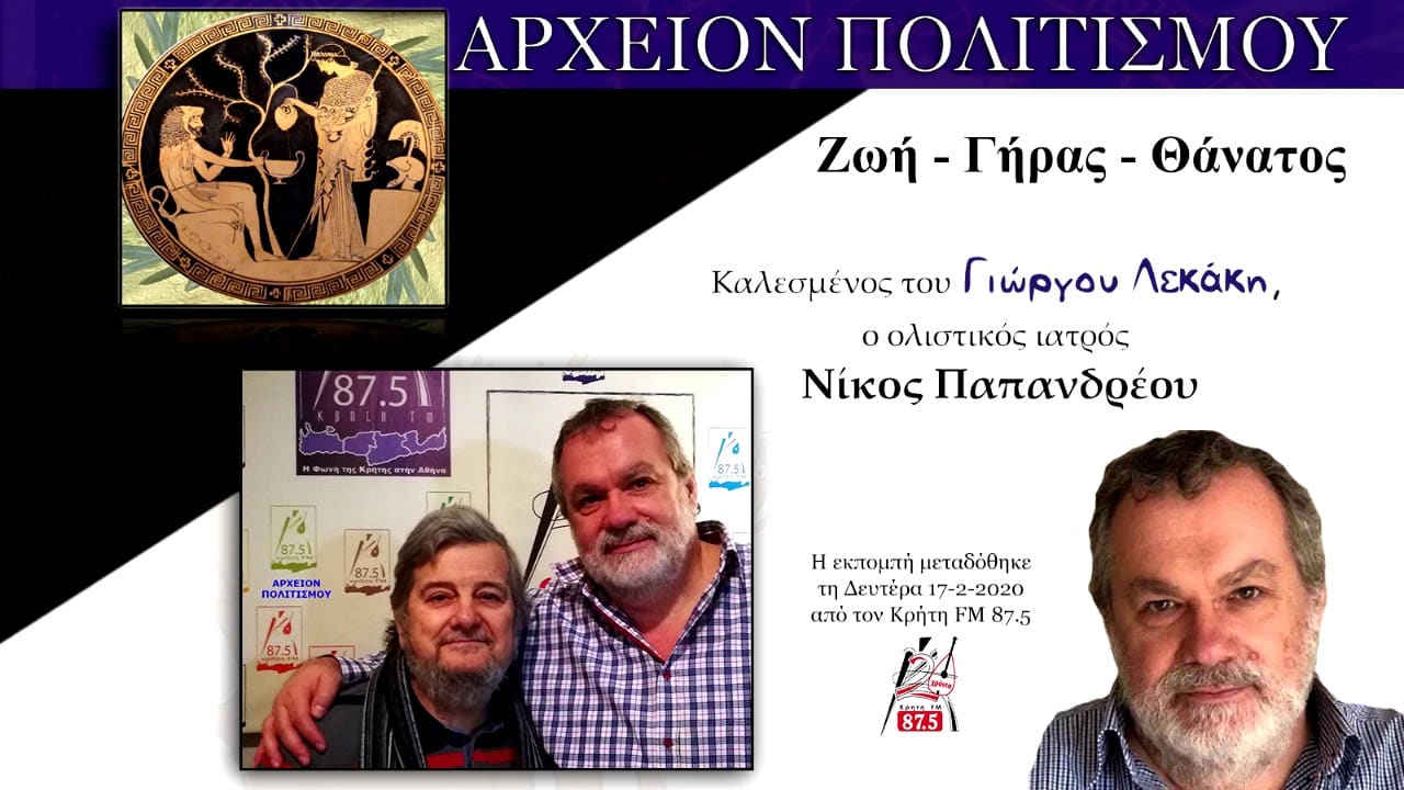 ΖΩΗ – ΓΗΡΑΣ – ΘΑΝΑΤΟΣ Καλεσμένος του Γιώργου Λεκάκη, ο ολιστικός ιατρός, Νίκος Παπανδρέου. Η εκπομπή μεταδόθηκε από τον ΚΡΗΤΗ FM 87.5, στις 17.2.2020. ΠΕΡΙΣΣΟΤΕΡΑ θέματα ΙΑΤΡΙΚΗΣ, ΕΔΩ. ΠΕΡΙΣΣΟΤΕΡΕΣ ΡΑΔΙΟΦΩΝΙΚΕΣ ΕΚΠΟΜΠΕΣ, ΕΔΩ. ΛΕΞΕΙΣ: Ζωη, Γηρας, Θανατος, Παπανδρεου, αθανατος, γηρατεια, αθανασια, ανθρωπος, υγεια, υγιεια