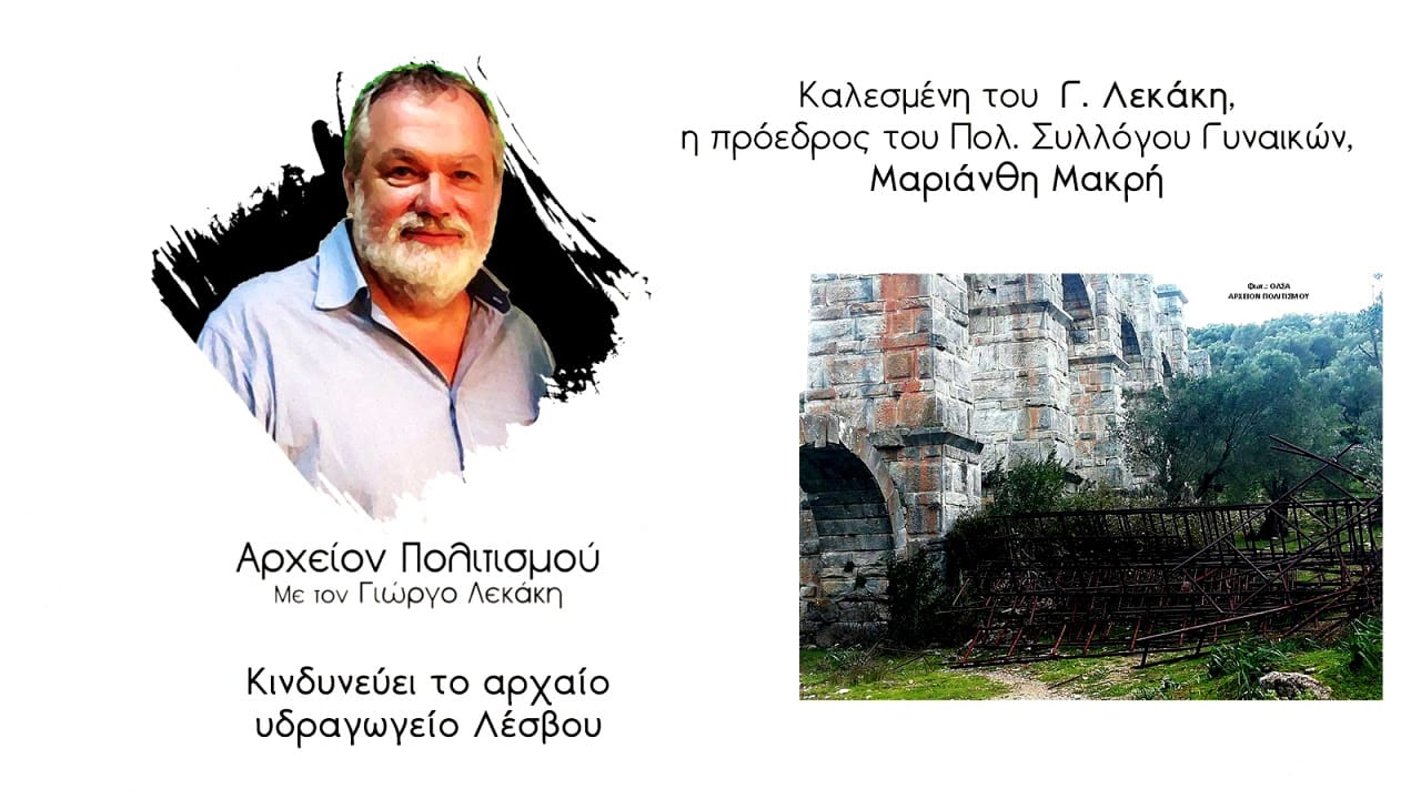Κινδυνεύει το αρχαίο υδραγωγείο Λέσβου Ραδιοφωνική εκπομπή Γ. Λεκάκη Καλεσμένη, η πρόεδρος του Πολιτιστικού Συλλόγου Γυναικών Μόριας Λέσβου, Μαριάνθη Μακρή. Η εκπομπή μεταδόθηκε στις 2.3.2021. ΠΕΡΙΣΣΟΤΕΡΑ για την ΛΕΣΒΟ, ΕΔΩ. αρχαιο υδραγωγειο Λεσβου, Μορια Λεσβου, Λεσβος