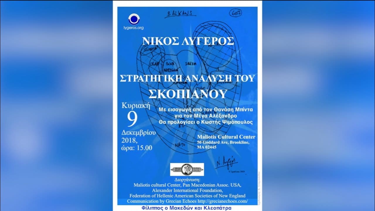 […] Ανάλυση του Σκοπιανού του Ν. Λυγερού Διάλεξη του Νίκου Λυγερού, που δόθηκε στη Βοστώνη των ΗΠΑ (στις 9 Δεκεμβρίου 2018) με τίτλο: “Strategic Analysis of the Skopje Name Issue / Στρατηγική Ανάλυση του Σκοπιανού”. (Η ομιλία του ξεκινά από το 55:10′). ΛΕΞΕΙΣ-ΚΛΕΙΔΙΑ: Λυγερος, Βοστωνη, Βοστονη, Boston, ΗΠΑ, 2018, Στρατηγικη, Αναλυση, Σκοπιανο, Σκοπια, Μακεδονια, Μακεδονικο, ομιλια, fyrom ΠΓΔΜ, Συμφωνια Πρεσπων