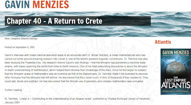 Έφυγε ο συγγραφέας Gavin Menzies («Επιστροφή στους χαμένους θησαυρούς της Ατλαντίδας»), που ασχολήθηκε με την τεχνολογία των Μινωιτών, από τους πρώτους που παρουσίασε το ταξίδι των Μινωιτών στον Καναδά – του Μ. Τσικριτσή