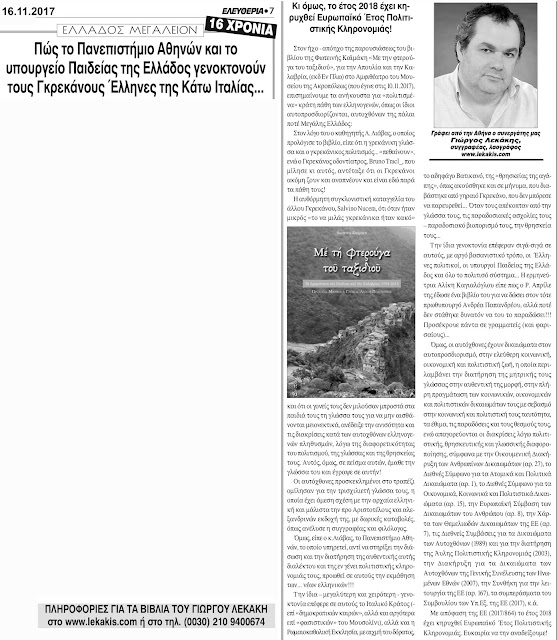 Πώς το Πανεπιστήμιο Αθηνών και το υπ. Παιδείας της Ελλάδος γενοκτονούν τους Γκρεκάνους Έλληνες της Κάτω Ιταλίας…