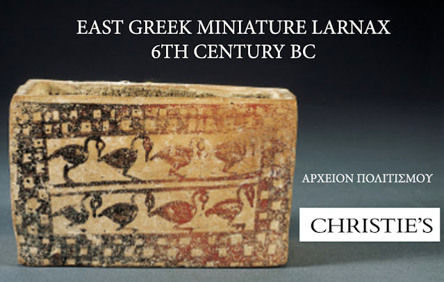 […] στην βάση και δύο κάθετες ζώνες guilloche και στις δύο πλευρές… Είχε πλάτος 15,52 εκατ. Επωλήθη για 5.875 δολλ. ΗΠΑ… ΠΗΓΗ: ΑΡΧΕΙΟΝ ΠΟΛΙΤΙΣΜΟΥ, 13.6.2000. σπανια αρχαια ελληνικη μινιατουρα λαρνακος, λαρνακα, αναθημα, εργο τεχνης, 6ος πΧ αιωνας, δημοπρασια, Οικος Κριστις, Ανατολικη Ελλαδα, αρχαιοκαπηλια, ανασκαφη, μαυρο λουστρο, κοκκινο, πτηνο, τετραγωνο, ζωνη guilloche πτηνο xepoulithike-arxaia-elliniki-miniatoura-larnakas-980532643.jpeg - Αρχείον ΠολιτισμοÏÂ