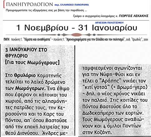 […] ορθογραφηθεί όπως στο παρόν άρθρο με “υ” (Κολυνδρός) και όχι με “ι” (Κολινδρός), όπως γράφεται σήμερα – ΠΕΡΙΣΣΟΤΕΡΑ ΠΡΟΣΕΧΩΣ… ΠΕΡΙΣΣΟΤΕΡΑ για την ΠΙΕΡΑ, ΕΔΩ. ΠΕΡΙΣΣΟΤΕΡΑ για το ΔΩΔΕΚΑΗΜΕΡΟ, ΕΔΩ. Δωδεκαημερο Δωδεκαμερο Κολινδρος Πιεριας Τσαμπουρης, 12ημερο Κολυνδρος Πιερια, πρωτοχρονια, χριστουγεννα, άγιος βασιλης, άη βασιλης, αγιος βασιλειος, σουγλα αηβασιλιατικα χρονος βασιλοπιττα. βασιλοπιτα, παντρεμενη γαμος, υπαντρεμενη υπανδρη κορη δωρα, […]