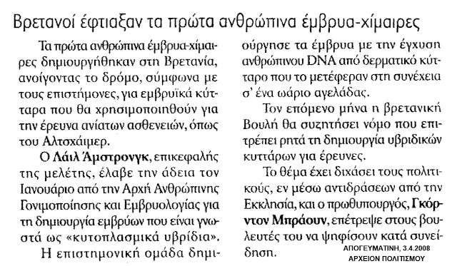 ΠΡΟΓΕΝΝΗΤΙΚΟ ΤΕΣΤ ΓΙΑ ΤΗΝ ΔΙΑΓΝΩΣΗ 30 ΓΕΝΕΤΙΚΩΝ ΑΣΘΕΝΕΙΩΝ ΑΠΟ ΕΞΕΤΑΣΗ ΕΜΒΡΥΙΚΟΥ DNA ΣΤΟ ΜΗΤΡΙΚΟ ΑΙΜΑ Χρήσιμο όταν ένας ή και οι δύο γονείς είναι γνωστοί φορείς κάποιας κληρονομικής ασθένειας, ή είναι μεγάλης ηλικίας Του καθηγητού Κωνσταντίνου Τριανταφυλλίδη Μια νέα καινοτόμος μη επεμβατική διαδικασία επιτρέπει διάγνωση 30 συχνών μονογονιδιακών κληρονομικών ασθενειών σε έμβρυα στην έναρξη […]