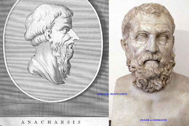 ΣΟΛΩΝ: «ΦΙΛΟΞΕΝΙΑ κάνουμε μόνο σε ΟΜΟΠΑΤΡΙΔΕΣ» «εν τοις ιδίοις πατρίσι ξένους ποιούνται»… Του καθηγητή Αναστασίου Στάμου Ὁ Ἀνάχαρσις ὁ Σκύθης θεωρεῖται ὁ 8ος Σοφὸς τῆς Ἑλλάδος. -“Γνούρου μὲν ἦν υἱός, ἀδελφὸς δὲ Καδουΐδα τοῦ Σκυθῶν βασιλέως, μητρὸς δὲ Ἑλληνίδος. Ὀνειδιζόμενος ὑπὸ Ἀττικοῦ ὅτι Σκύθης ἐστίν, ἔφη: ἀλλ’ ἐμοῦ μὲν ὄνειδος ἡ πατρίς, […]